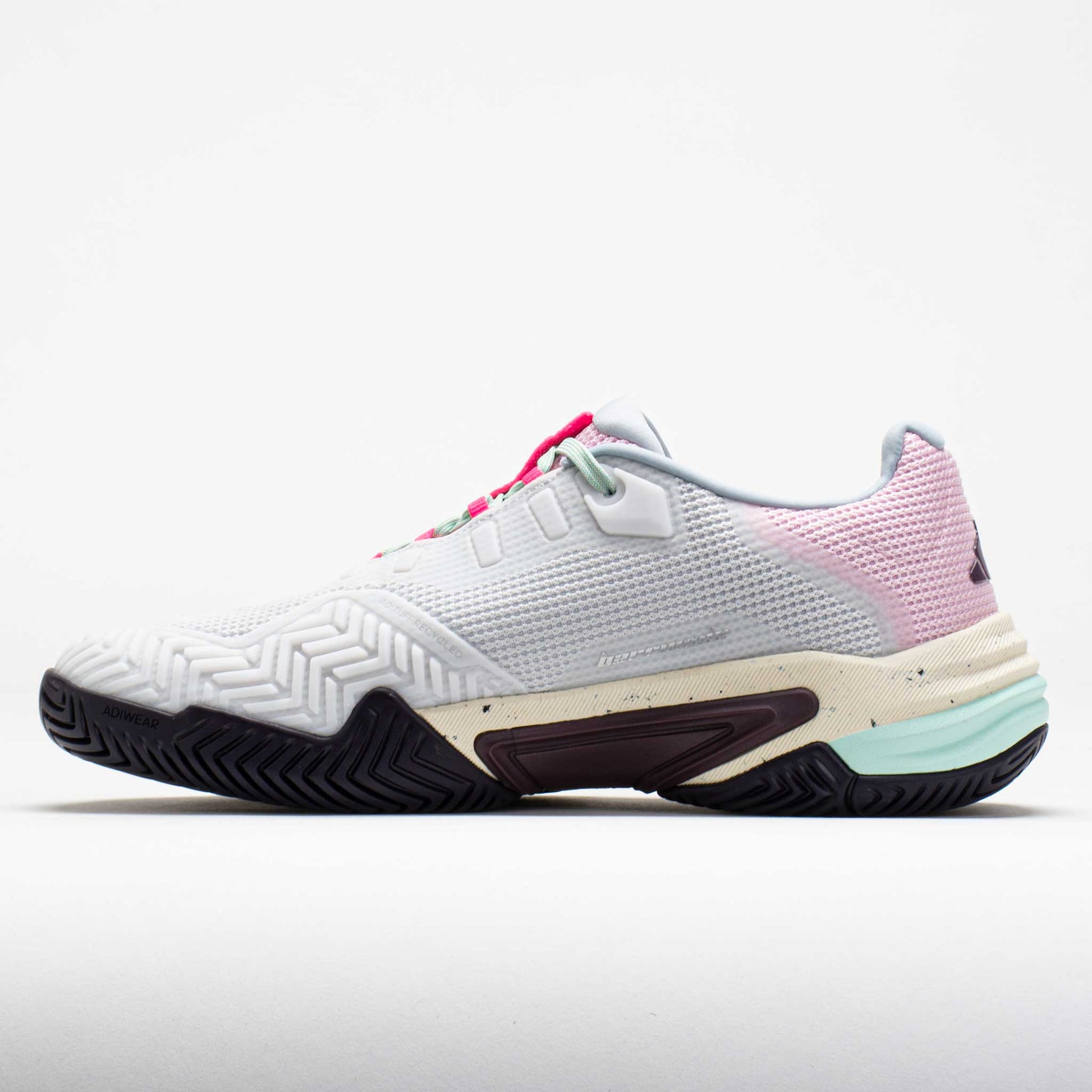 Experience ultimate control in the adidas Barricade 13! This iconic tennis shoe keeps you supported on the court. Stay comfortable during the match in the breathable mesh upper. A firmer Repetitor+ foam in the forefoot provides lateral stability, while a softer foam in the heel absorbs shock from every step. Enjoy a plush step-in feel from the soft tongue and revised GEOFIT pods in the heel. Built for baseline grinders, the adidas Barricade helps you control the court!