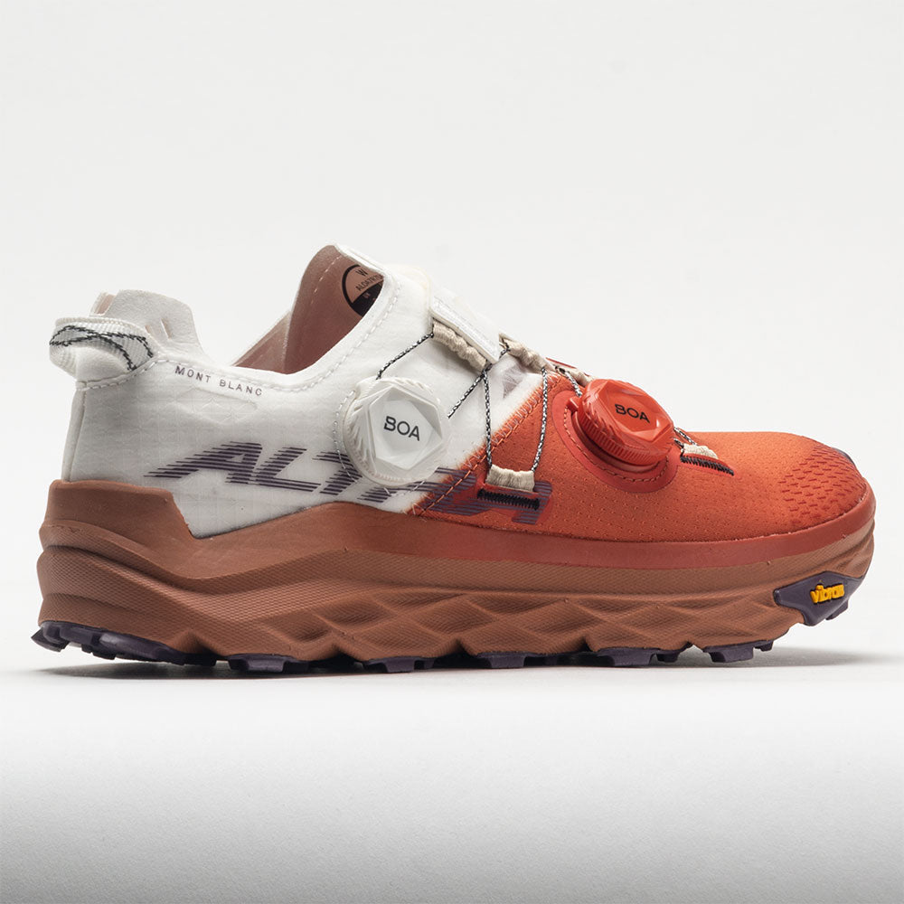 Hit the trails at high speeds in the Altra Mont Blanc BOA?! Built for racing, this off-road running shoe helps you run fast during long distance efforts. Slip into a light and breathable upper with a dual-dial BOA? Fit System for personalized comfort. Every stride on the Altra EGO? Max provides lightweight comfort with an extra bounce to push the pace. The Vibram? LiteBase outsole uses micro and macro lugs for reliable grip whether youre charging uphill or bombing downhill. For those who go fast, the Altra Mont Blanc BOA? is race-day ready!